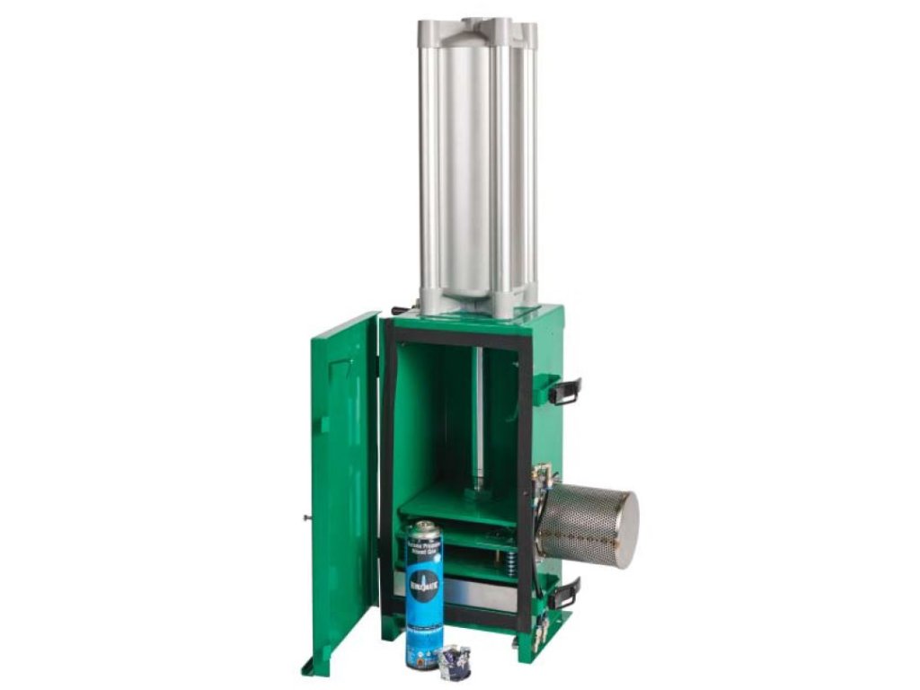 Aerosolový lis a drtič Unic je unikátní pneumatické zařízení, které je schopné propichovat, odplyňovat a drtit odpadní aerosoly, v případě potřeby aerosol také vyprazdňovat, takže jej lze zlikvidovat jako kovový šrot. To Vám pomůže recyklovat odpadní aerosoly a snížit jejich dopad na Vaše zdraví a bezpečnost. Zhutnění až 80 % a úspora nákladů na likvidaci. Silné, robustní a spolehlivé zařízení.